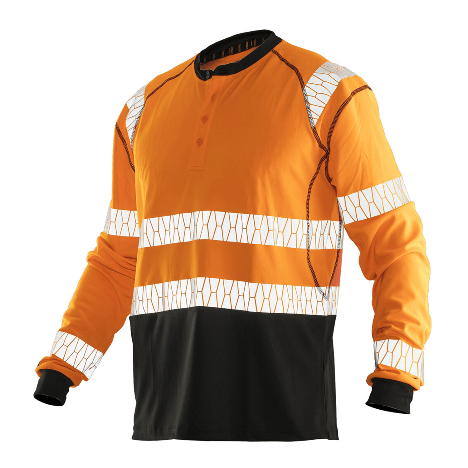 Geavanceerd T-shirt met lange mouwen gemaakt van hoge kwaliteit polyester dat vocht snel van het lichaam afvoert voor een aangenaam droog gevoel. De polyester stof is zo ontworpen dat het bescherming biedt tegen UV-straling (UPF 40+). De goede pasvorm zorgt voor optimale bewegingsvrijheid. Daarnaast is het T-shirt afgewerkt met contrasterend paneel, 4 ton sur ton knopen, flatlock naden en een geprint label voor een zeer prettig draagcomfort. Het T-shirt is voorzien van zachte reflecterende strepen voor optimale zichtbaarheid. Gecertificeerd volgens EN 13758-2:2003+A1:2006 UPF 40+. Klasse 2 gecertificeerd volgens EN ISO 20471.